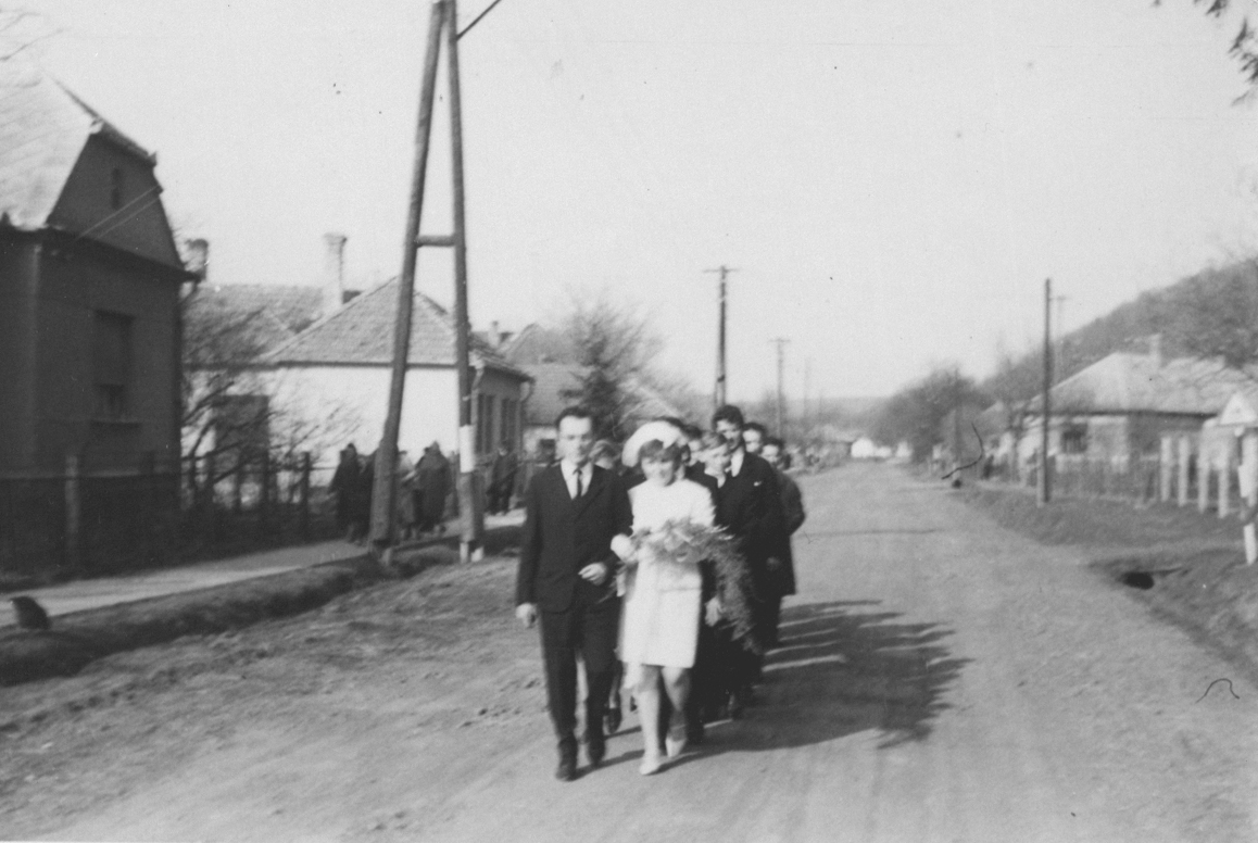 Petőfi út 1969-ben. Házassági felvonulás. Horváth Gyula és Vigh Mária.